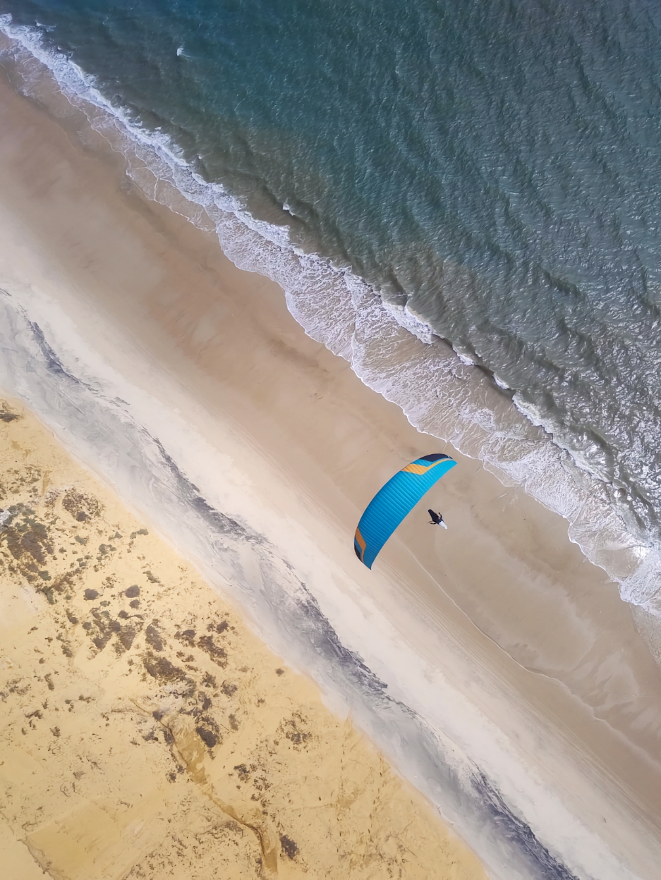 En los vuelos biplaza en paramotor, apagamos el motor aproximadamente a mitad del recorrido para ofrecer una experiencia de dos vuelos en uno: primero motorizado y luego en vuelo libre hasta la zona de aterrizaje.