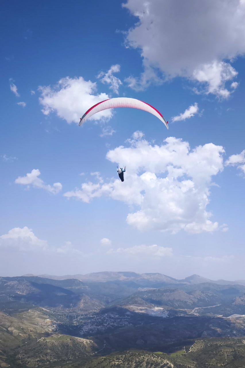 Vuelo en parapente biplaza con vistas a Granada y al Valle del Río Genil.